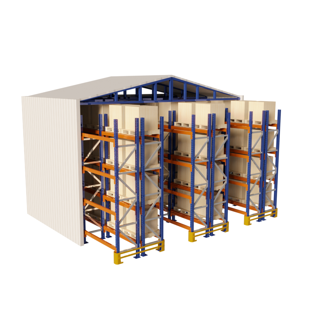 El rack actúa como parte de la estructura del almacén, reduciendo costos de construcción.